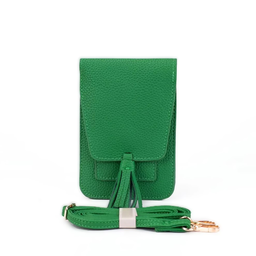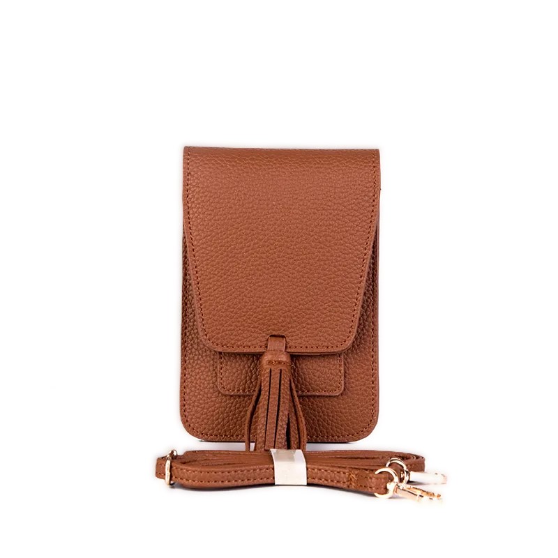 Add a touch of playful texture to your daily rotation with this pebbled faux leather phone bag, featuring a prominent, handcrafted-style tassel on the front flap. This vertical crossbody is designed with a sleek, slim profile that offers a secure yet accessible home for your smartphone. The classic envelope-style flap provides an extra layer of protection, making it an ideal companion for travel, festivals, or quick city errands.